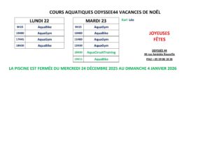 • PLANNING AQUA ET FITNESS VACANCES DE NOËL
